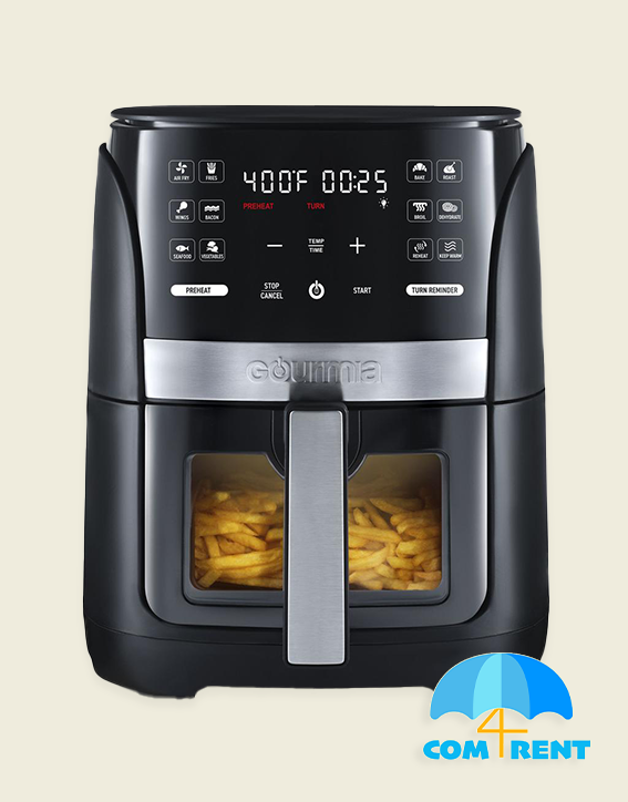 Fancy a snack? No need to get takeaway. Instead, use one of our air fryers to make them yourself. Air fryers are known to use far less oil than regular fryers, which makes it a great, easy to use alternative. Enjoy a snack at the side of the pool, in your garden or even your hotel room late at night. Enjoy healthy cooking with the Gourmia 5.6 L / 192 oz air fryer. Its extra large square basket is perfect for cooking for the whole family. With 12 one-touch cooking functions, you can fry, bake, roast and more. Fry Force 360 ° technology cooks your food evenly and crisp, using up to 80% less fat. In addition, the customizable steps always guarantee you the best results. Its intuitive touch screen and easy cleaning make cooking even more convenient.