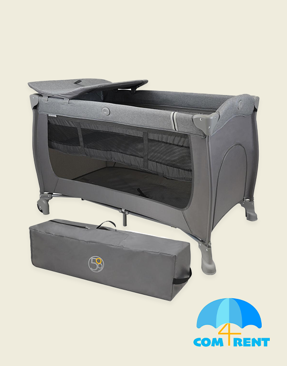If you need a pack & play for your child, you can rent it at Com4Rent. Your baby's comfort and safety are our priority. With the 509 Crew 4-in-1 folding cradle, you have everything you need in one product. In addition to the practical changing table and storage pocket, it has a raised level for newborns and a side exit for small children. Its simple folding mechanism makes it easy to assemble and disassemble. Storage and transport is just as easy thanks to its compact design and the included carrying bag. Give your baby a safe and comfortable place to rest wherever you go!